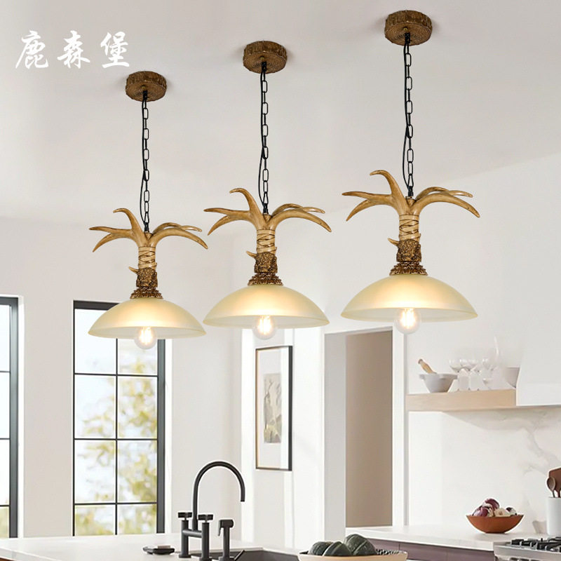 鹿角灯美式乡村餐厅灯服装店复古怀旧北欧后现代吊灯创意个性灯具