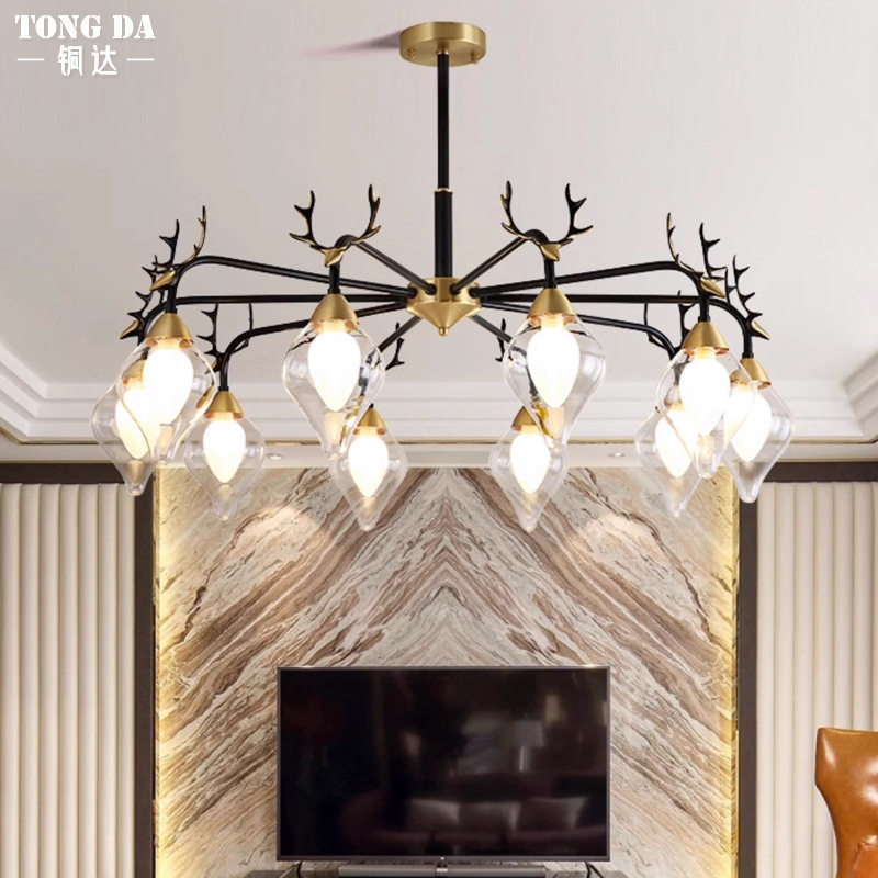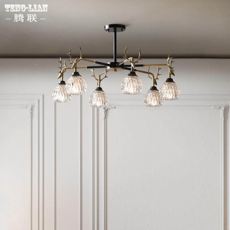 美式鹿角客厅吊灯全卧室厅书房轻现代别墅简约6690大厅家餐用铜具