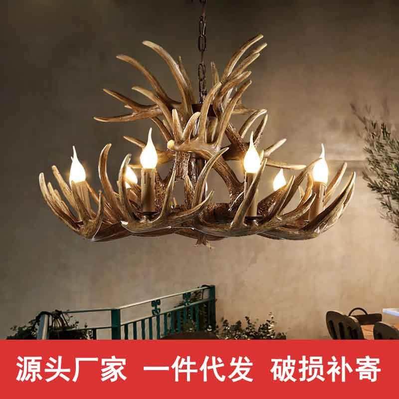 鹿角吊灯美式复古吧台卡座餐厅吊灯清吧咖啡厅民宿小木屋装饰吊灯
