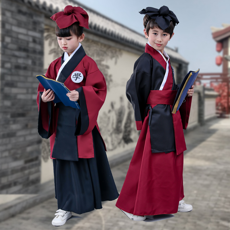 儿童古装男女童汉服中国风书童演出服装小学生三字经弟子规表演服