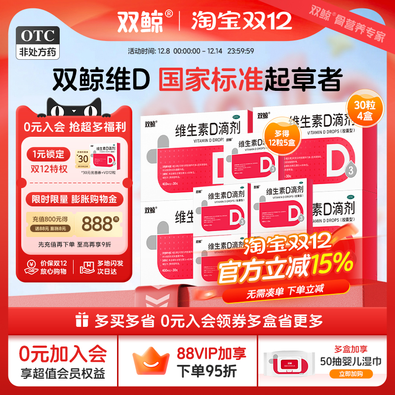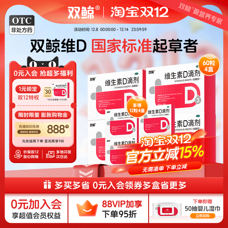 双鲸悦而维生素d3滴剂60粒补钙非钙片婴幼儿童成人孕妇官方正品