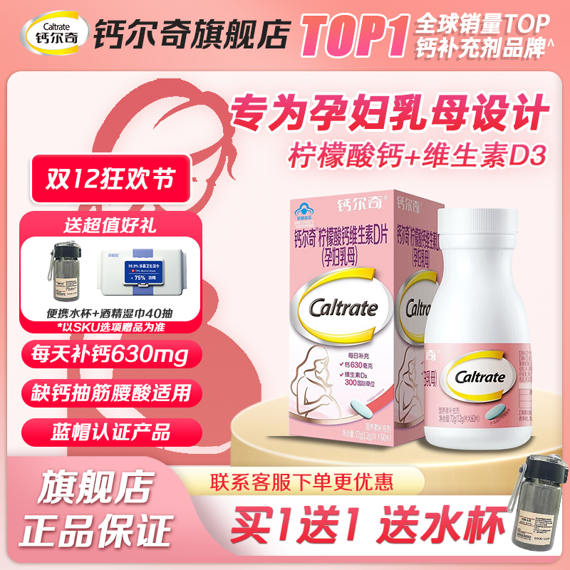 钙尔奇孕妇钙片柠檬酸钙维生素孕期哺乳期补钙专用官方旗舰店正品