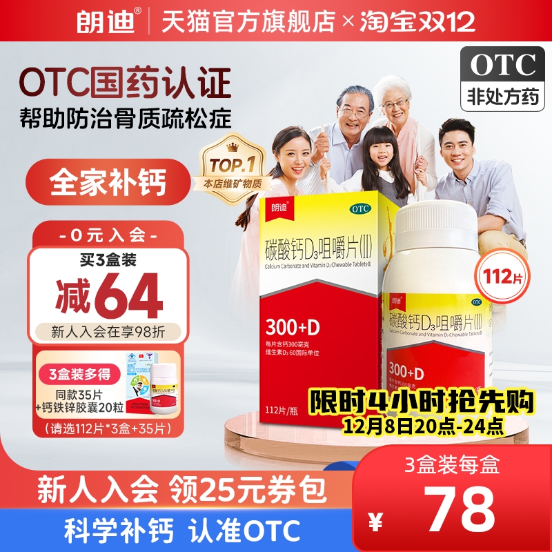 朗迪碳酸钙d3咀嚼片成人中老年儿童钙片维生素d孕妇补钙官方正品