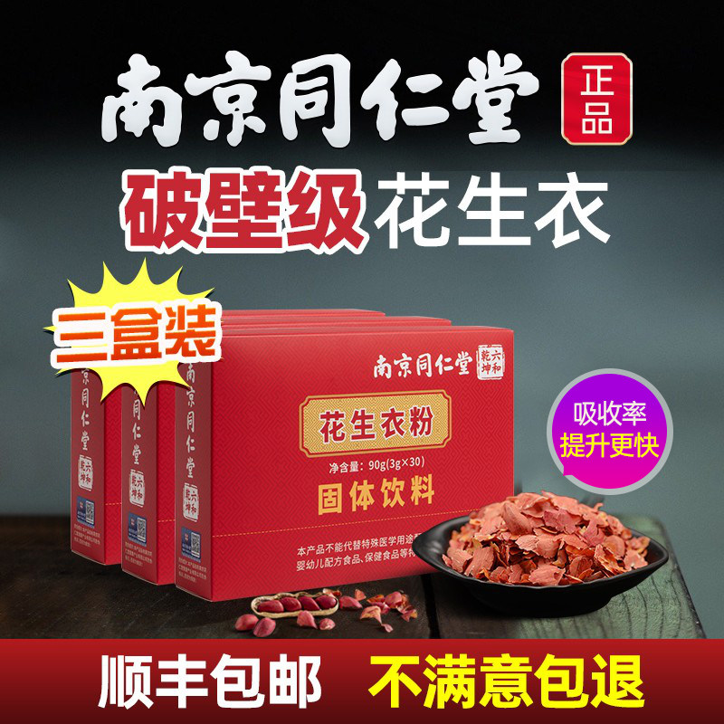 南京同仁堂花生衣红皮血小板红衣花生皮低提升破壁花生衣粉三盒装