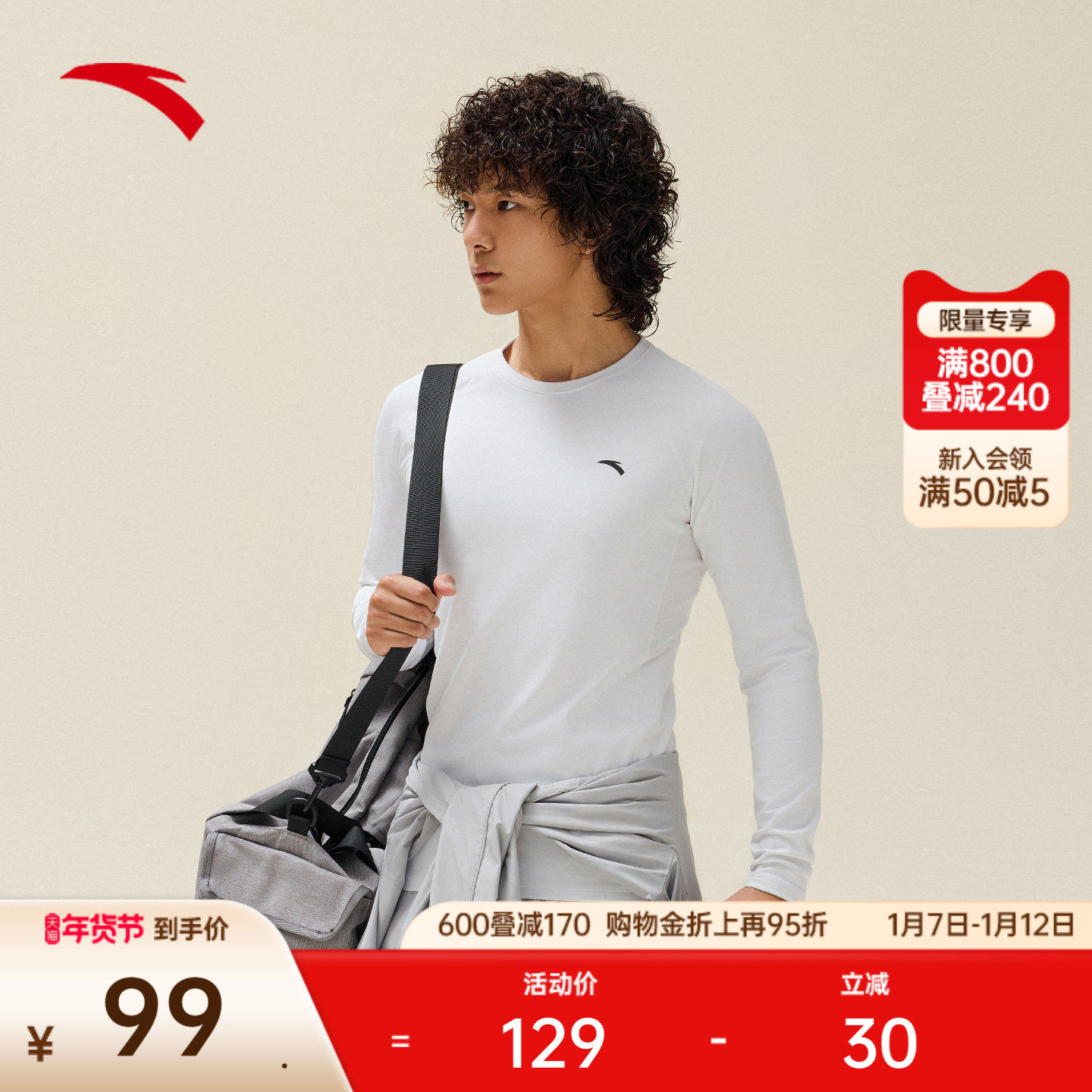 安踏紧身衣加绒长袖男士冬季新款篮球跑步训练弹力压缩衣运动上衣
