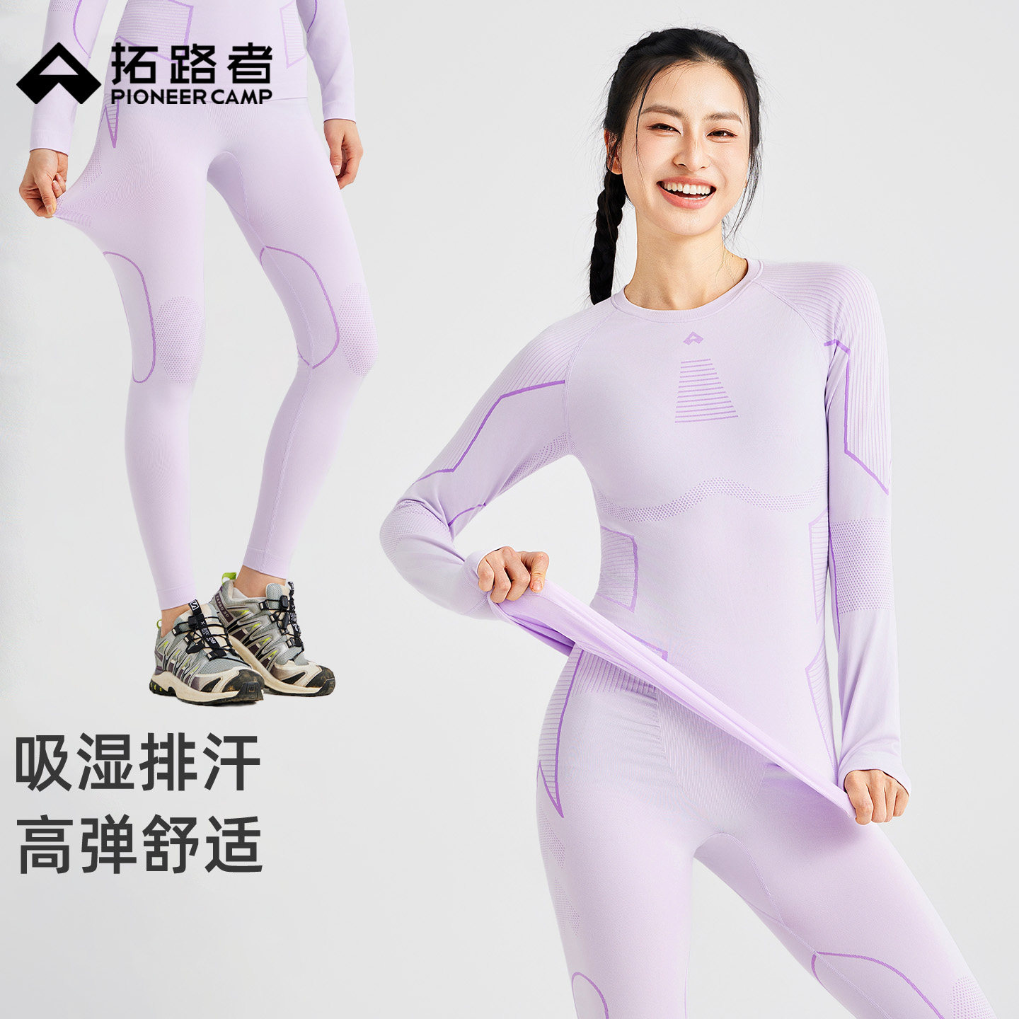 拓路者滑雪保暖贴身层快干压缩衣女秋季高弹吸湿打底内搭两件套装
