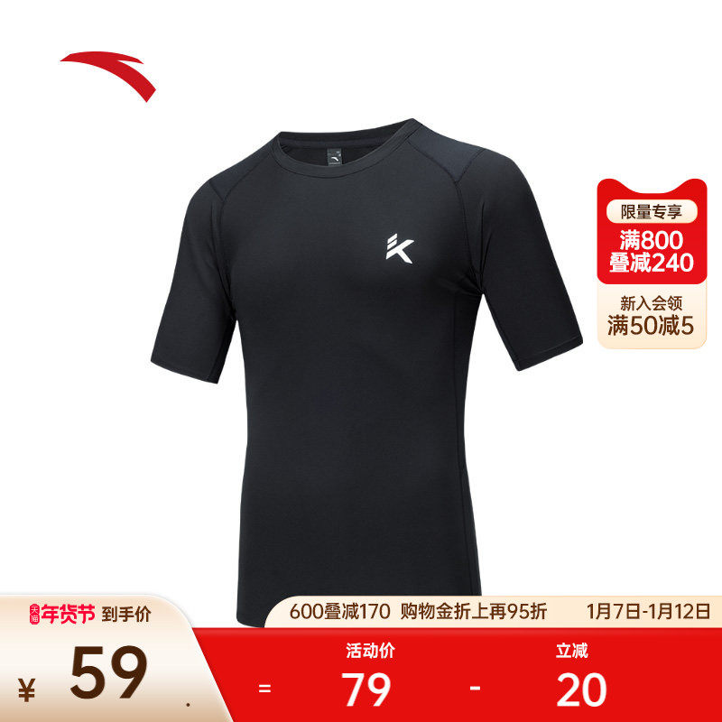 安踏速干T丨KT篮球训练紧身衣运动短袖男夏季新款压缩衣跑步上衣