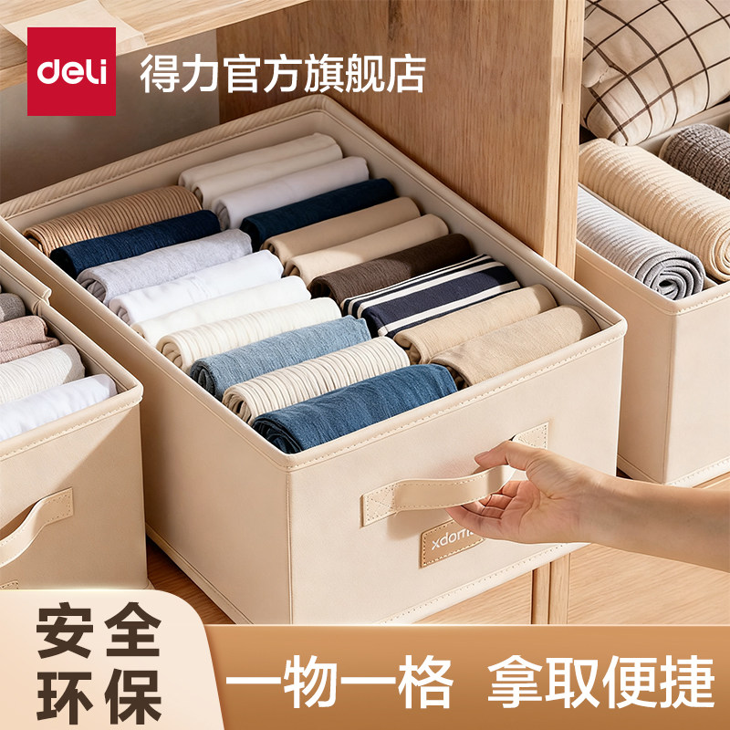 天山棉麻收纳筐衣柜收纳整理分层神器PP板可水洗衣服储物盒收纳箱