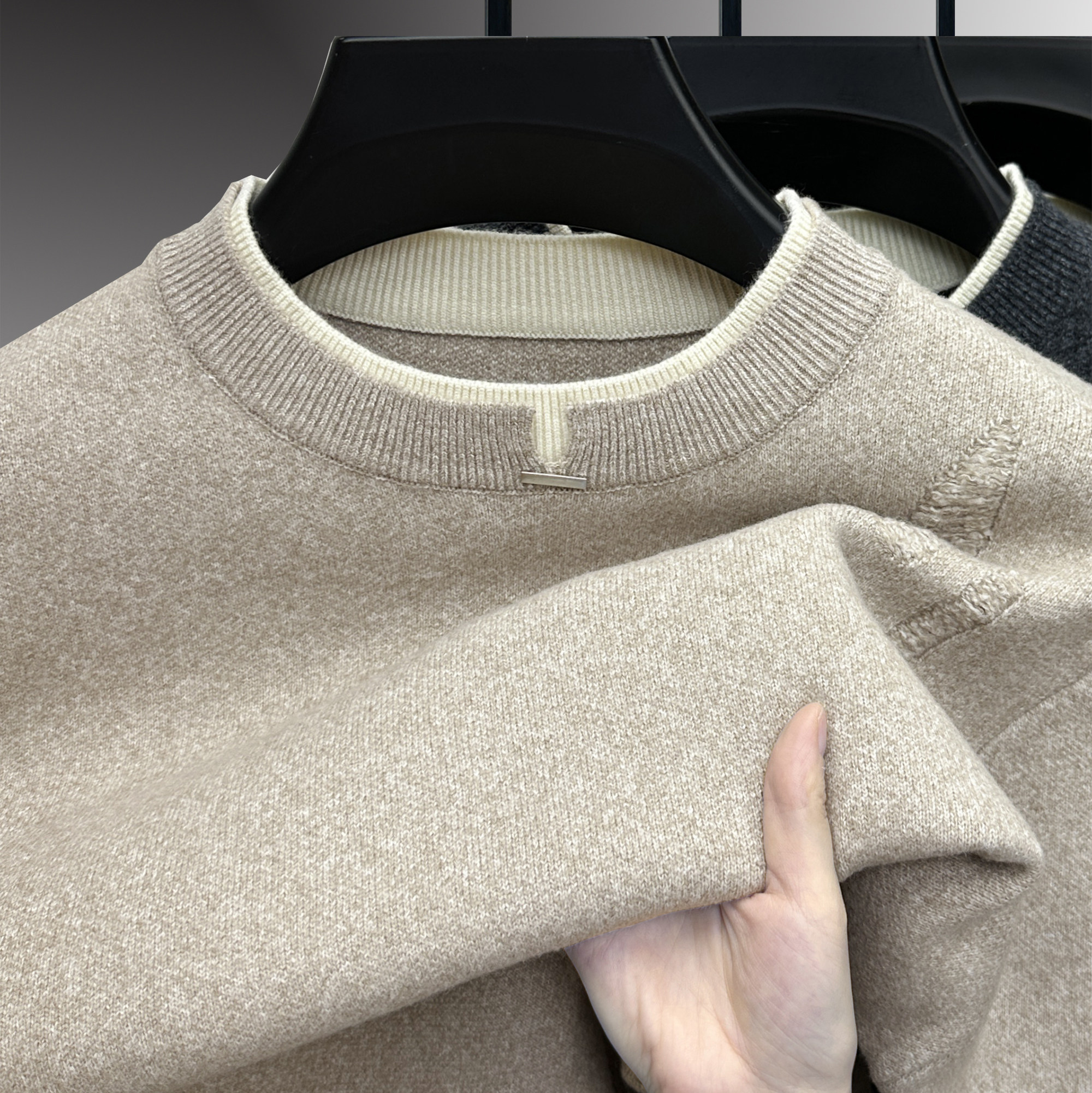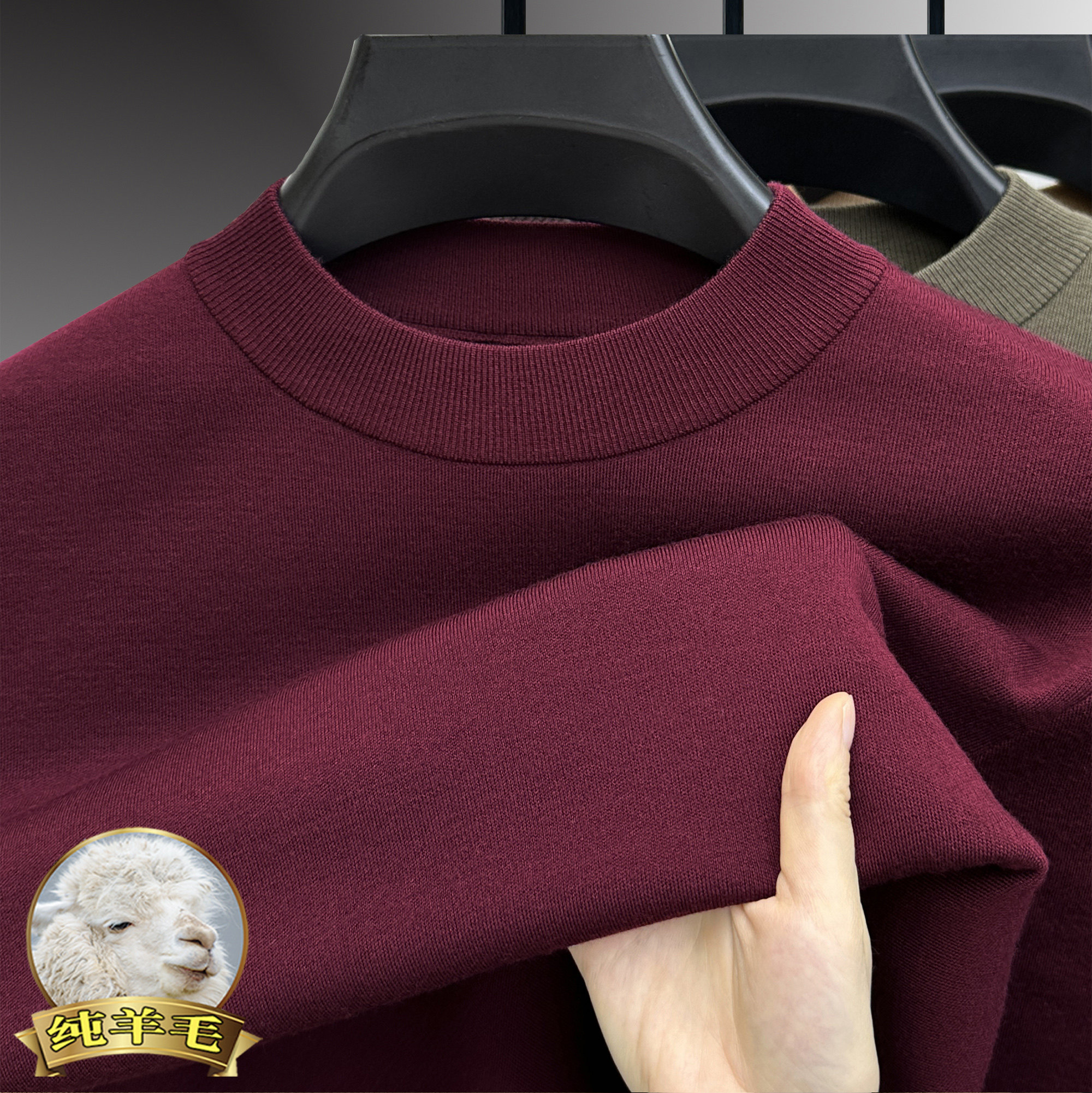 - 羊绒衫男圆领加厚