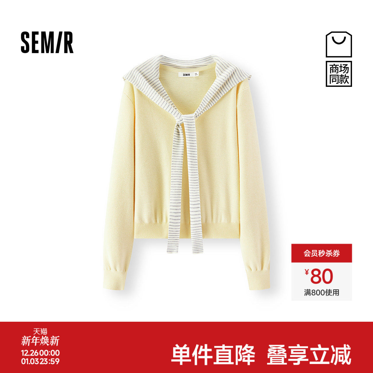 商场同款|森马针织衫女秋条纹披肩V领短款毛衫2025新款文艺两件套
