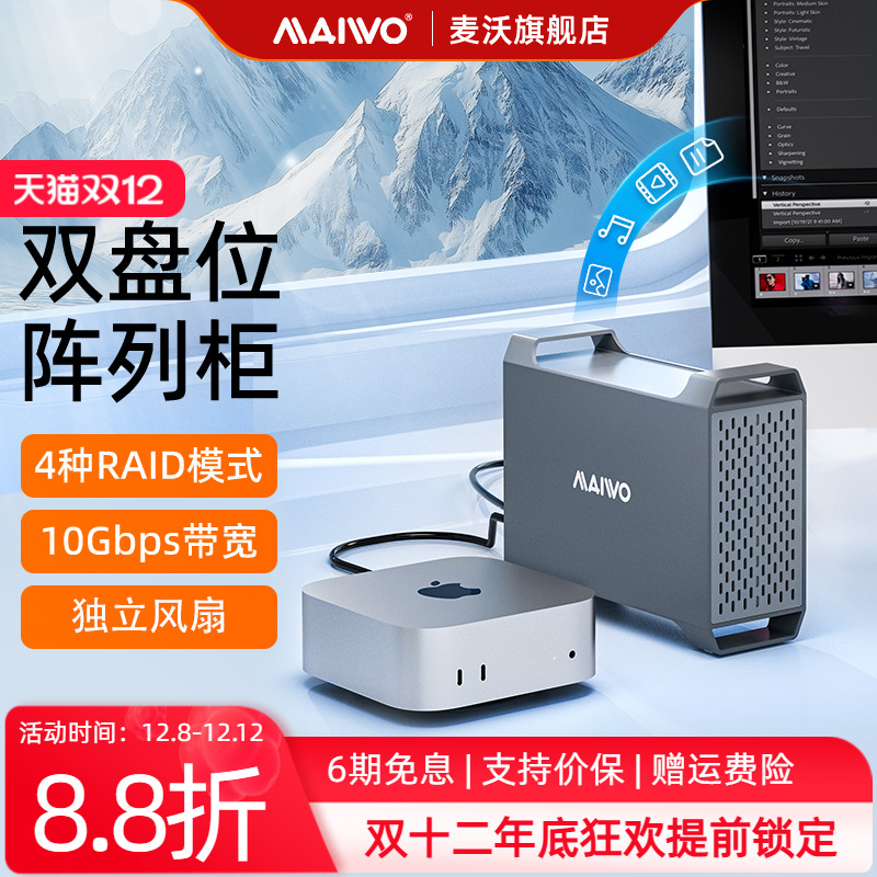 麦沃阵列硬盘柜typec4盘位raid磁盘读取器机械飞牛NAS扩容存储柜