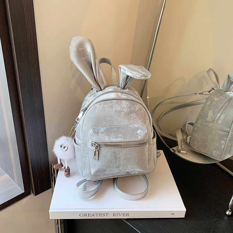 卡通双肩包女潮个性搞怪萌丝绒小书包可爱兔耳朵潮萌小包包潮包女