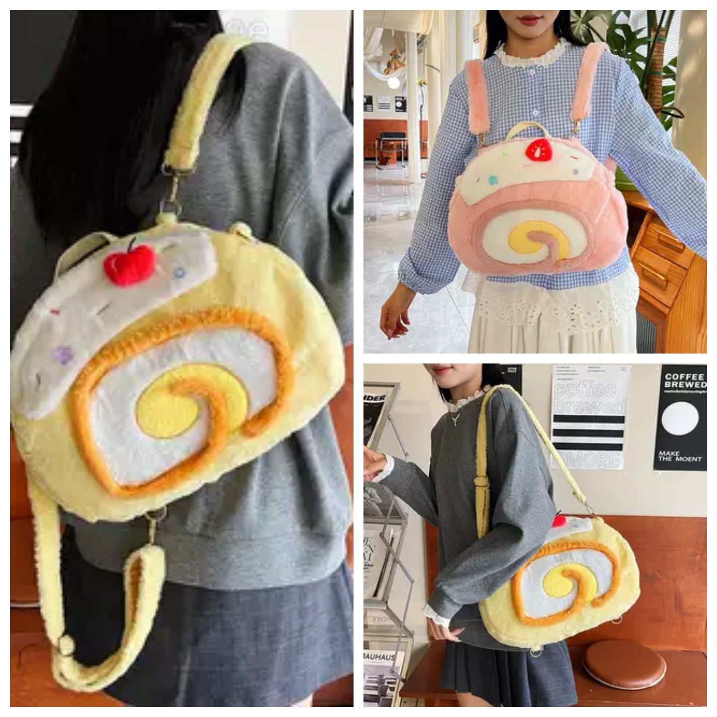 个性创意瑞士卷毛绒双肩包女日系可爱少女心多巴胺高颜值外出背包
