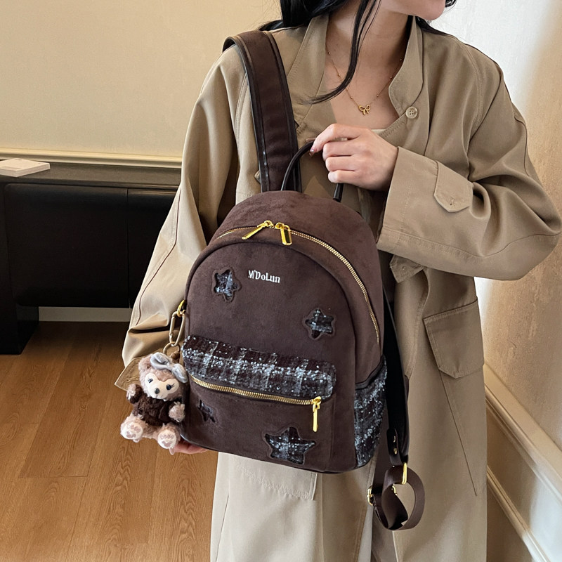 冷门不撞款丐版双肩包女复古拼接个性星星背包冬天绒面时髦小书包