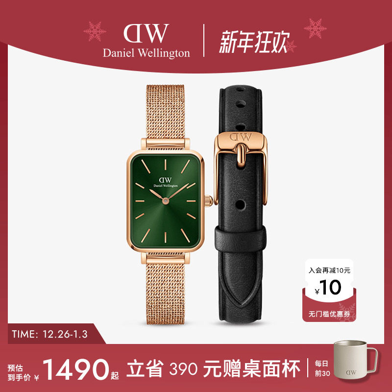 【圣诞礼物】DW女士手表QUADRO系列小方表轻奢小众小绿表腕表绿色