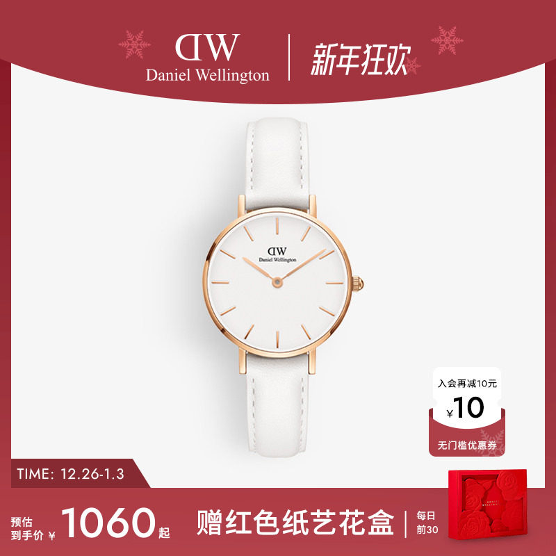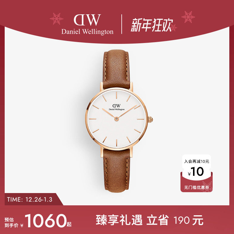 【圣诞礼物】DW手表女士 PETITE优雅皮质圆表轻奢小众石英表女