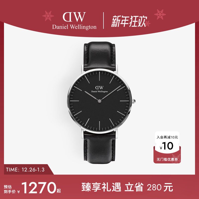 DW手表男款 CLASSIC系列经典复古黑色皮质圆表商务石英表男士腕表