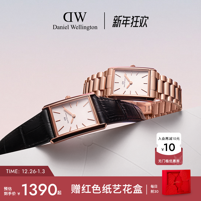 【圣诞礼物】DW手表女款QUADRO系列复古小方表轻奢小众腕表女学生