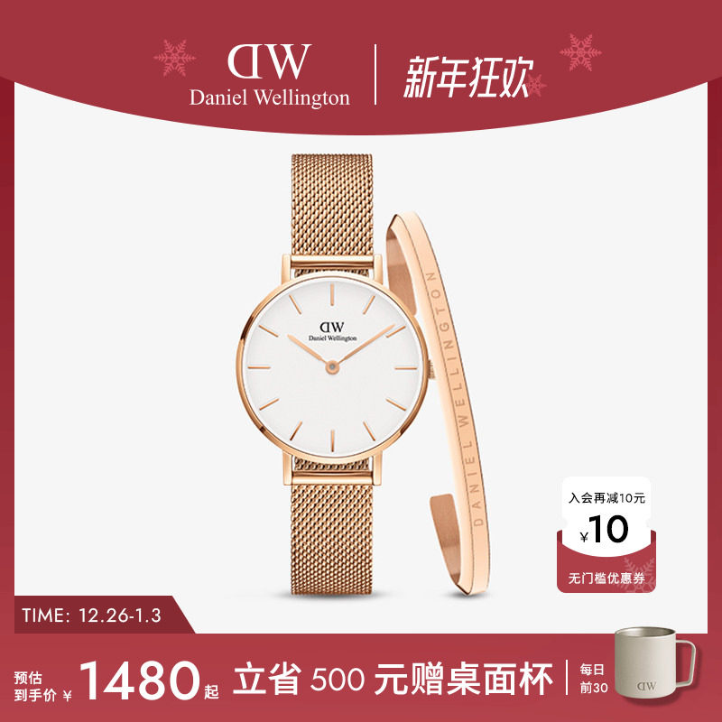 DW手表手镯套装 PETITE系列腕表女玫瑰金色镯子套装品牌轻奢设计