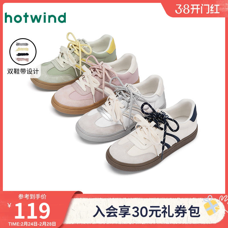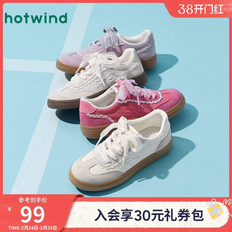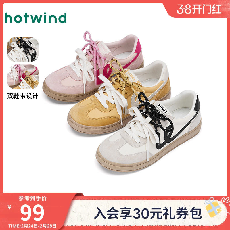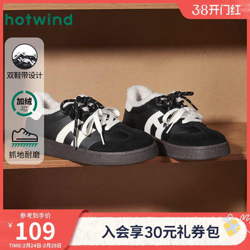 热风平底德训鞋女鞋2025年冬季新款女士时尚休闲鞋百搭慢跑鞋子