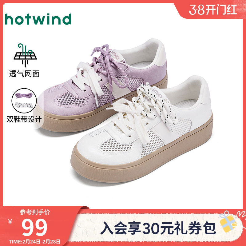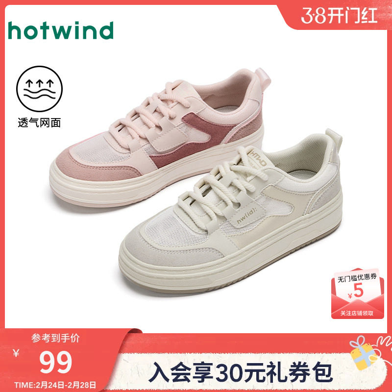 热风平底小白鞋女2026年春秋季新款网面透气板鞋户外跑步百搭鞋子