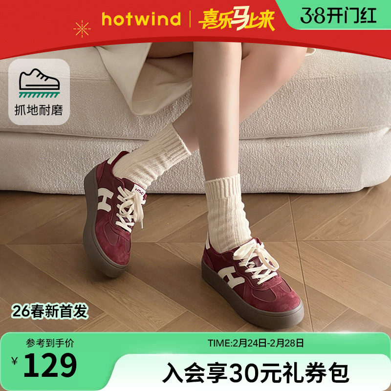 热风厚底德训鞋女款2026年春季新款复古红色增高女鞋百搭休闲鞋子
