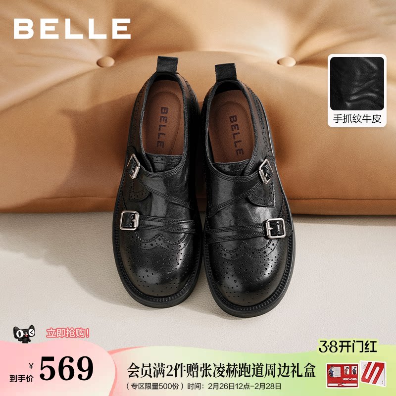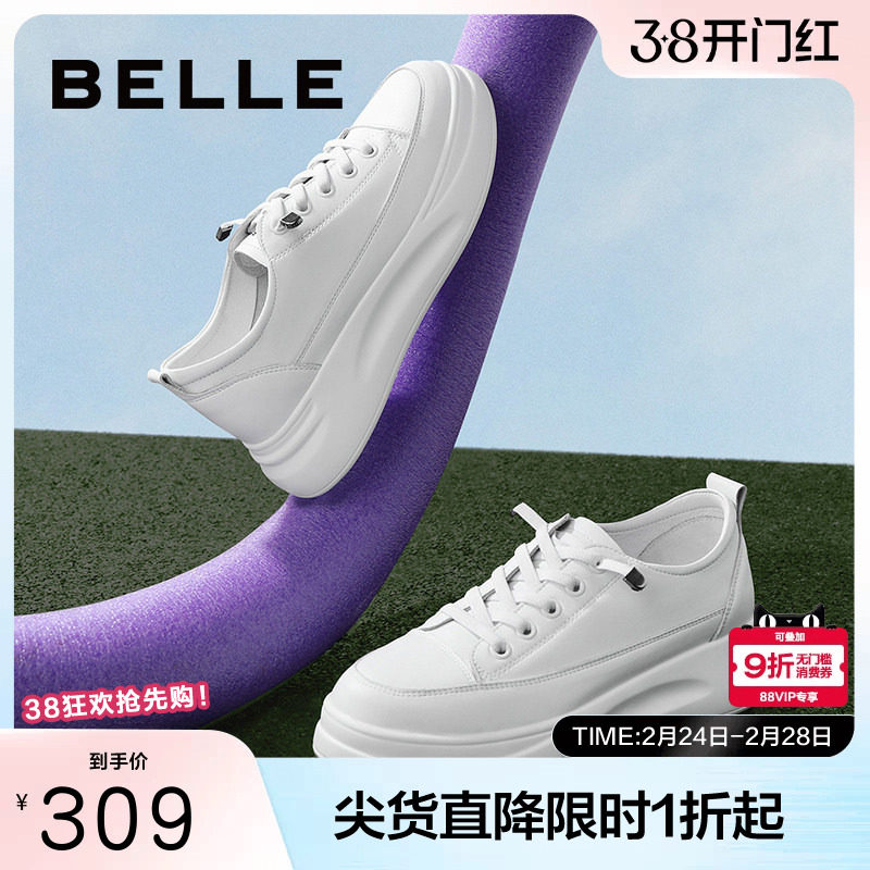 百丽女鞋子厚底小白鞋春软底套脚简约轻便减龄休闲板鞋U8N1DAM3