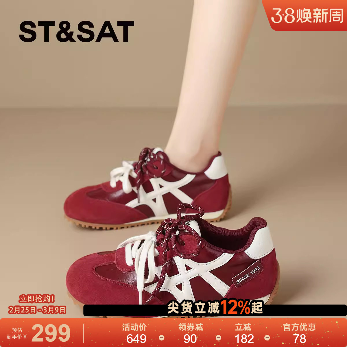 星期六真皮德训鞋女鞋红色女款鞋子爆款厚底增高运动鞋复古休闲鞋