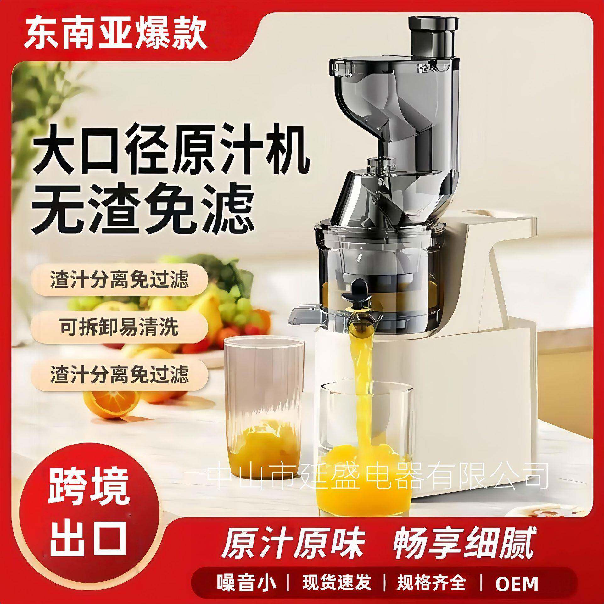 跨境榨汁机汁渣分离家用水果蔬菜商用大型口径免切过滤慢速原汁机