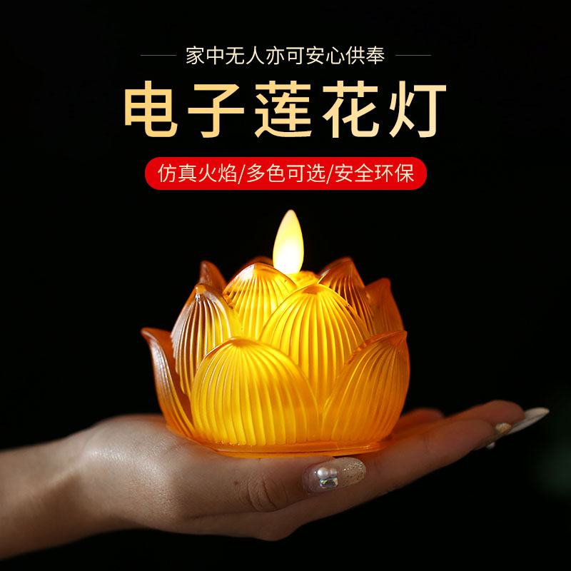 莲花灯佛供灯家用长明灯LED佛灯供灯佛前供奉灯电池灯电子蜡烛灯