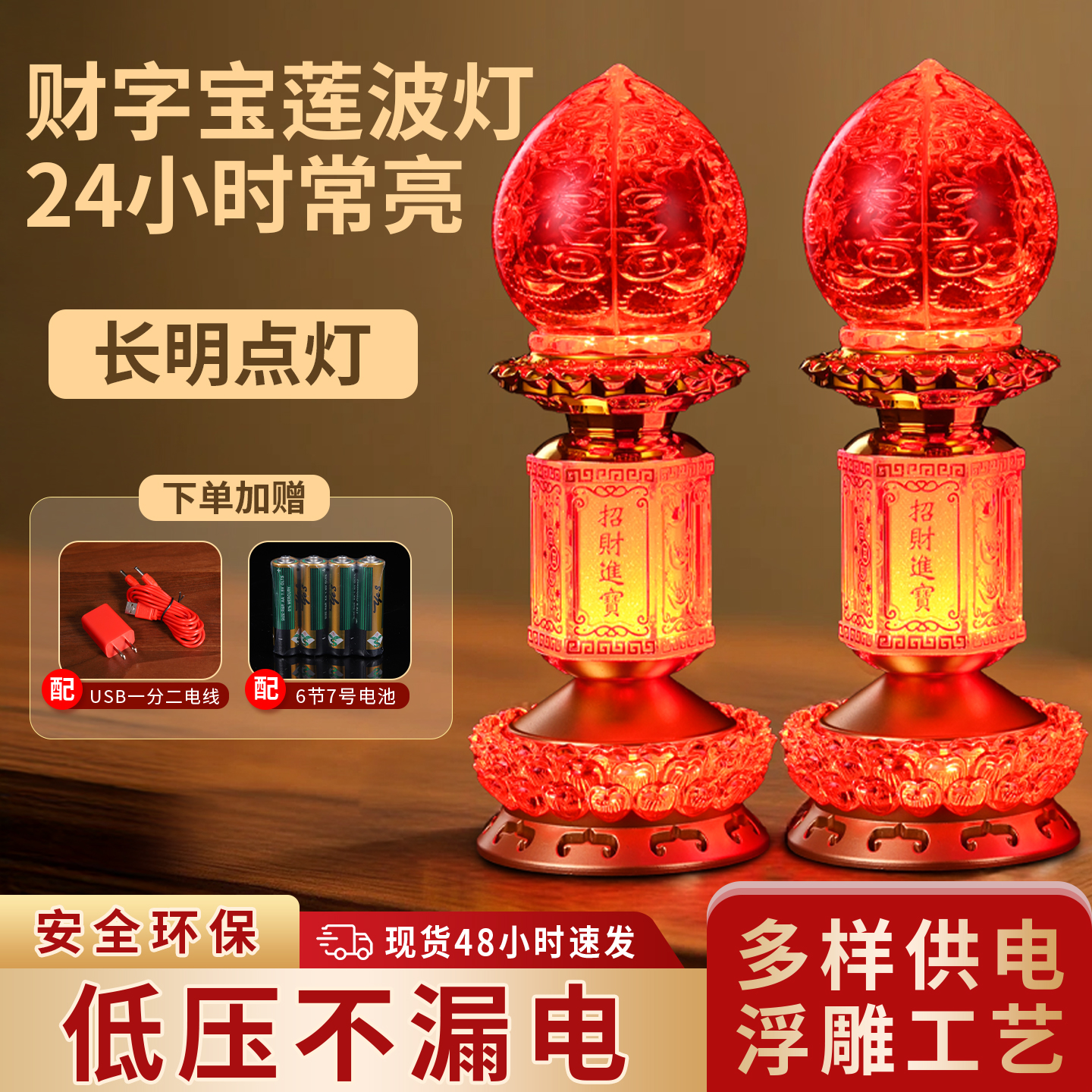 插电财字波灯led财神灯电蜡烛灯家用佛灯供灯一对长明灯佛前供灯