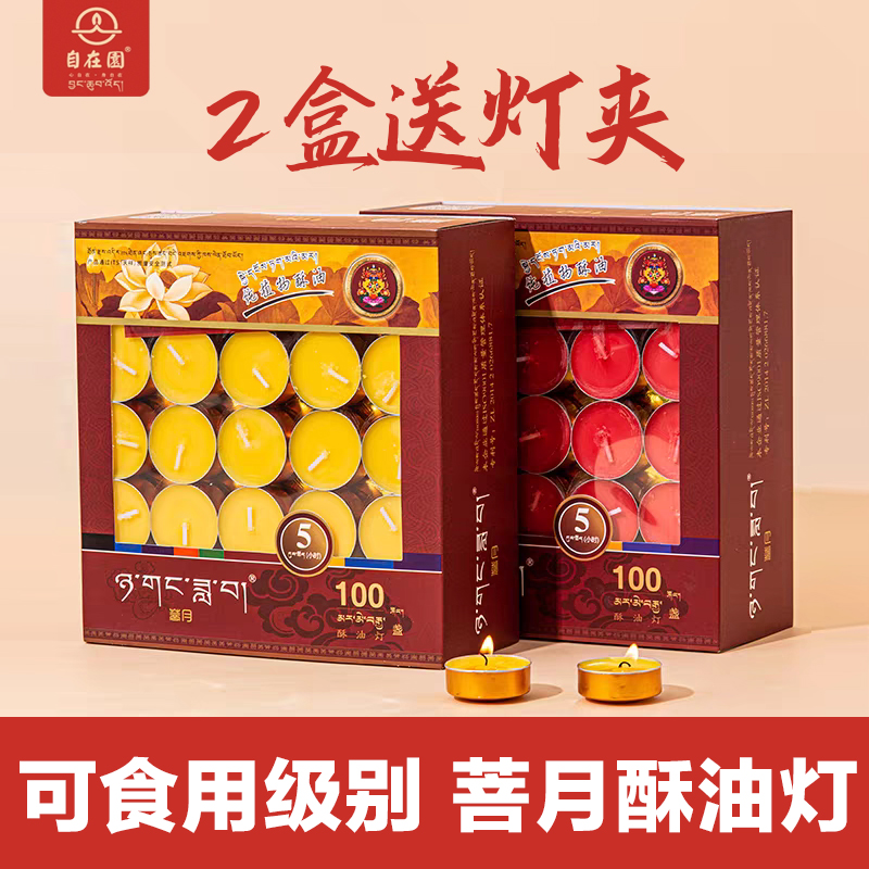 自在园酥油灯4/8小时家用无烟蜡烛供佛灯供灯100粒藏式用品苏油灯