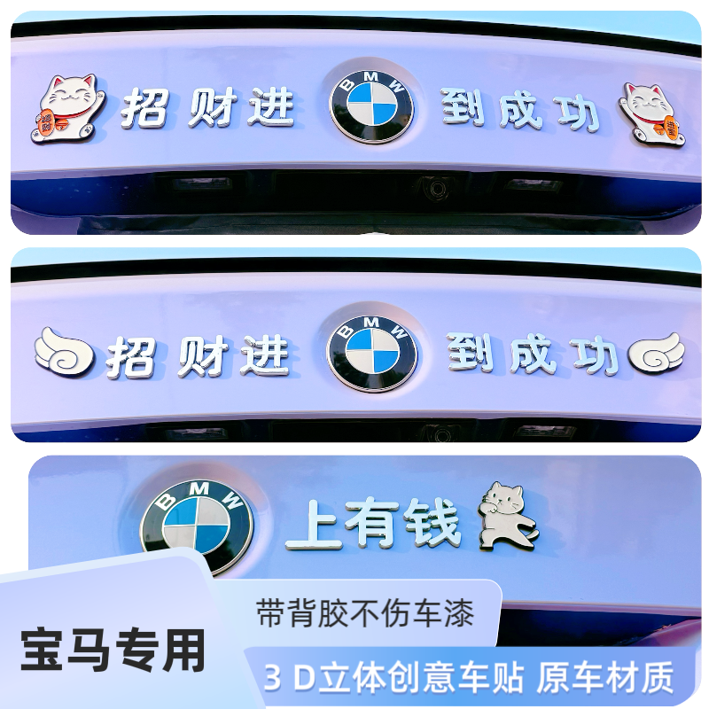 适用宝马上有钱改装饰汉字招财进宝马到成功3D立体汽车身尾标贴纸