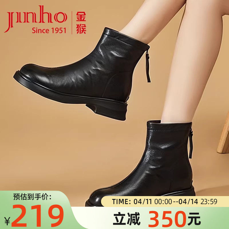金猴女靴2025冬季新款羊皮时尚法式时装靴子女休闲百搭黑色马丁靴