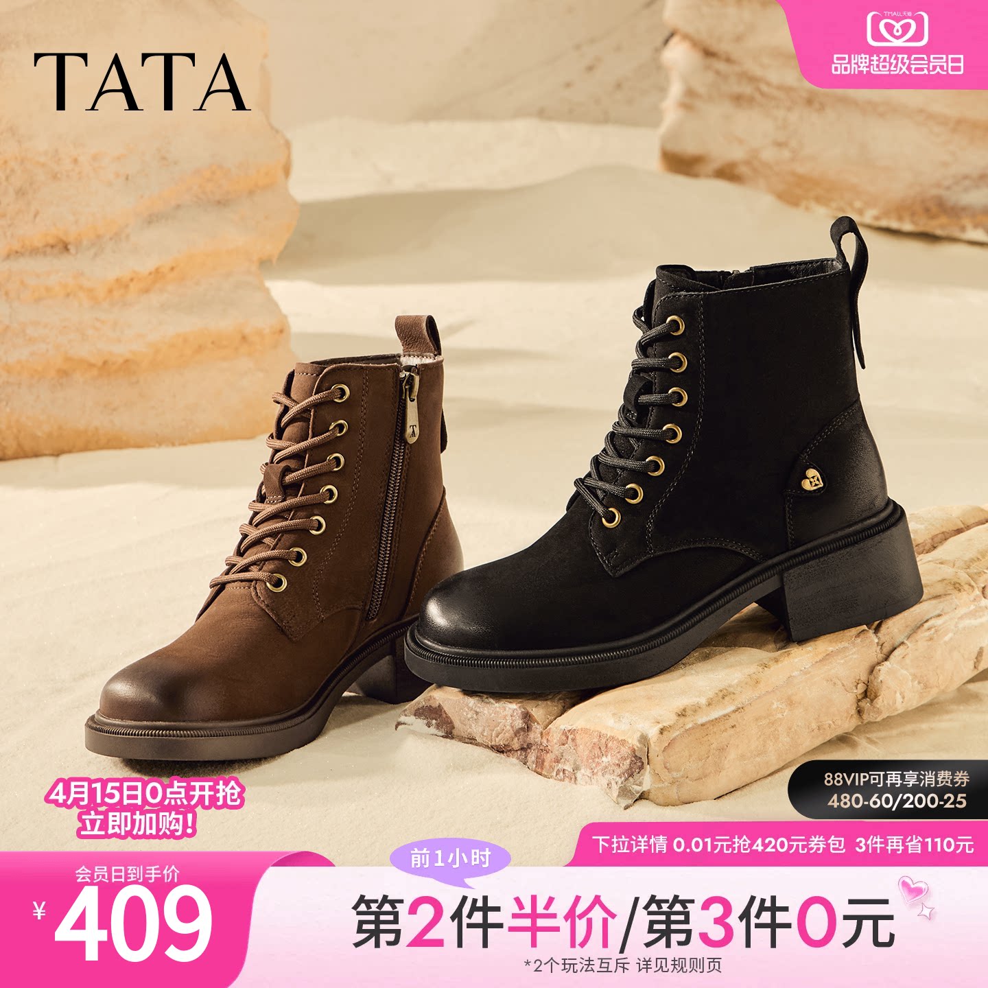 TATA他她靴子女2025冬季新款复古马丁靴百搭时装靴短靴WZQ03DD5