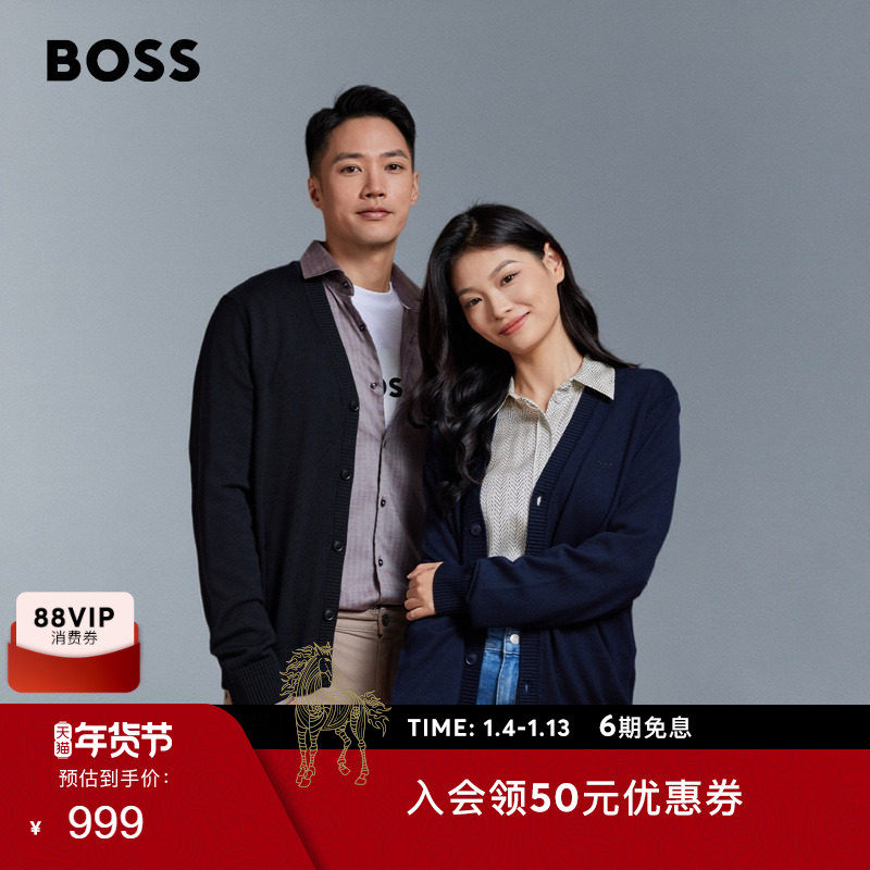 【男女同款】BOSS博斯 男士刺绣徽标羊毛混纺常规版型针织开衫