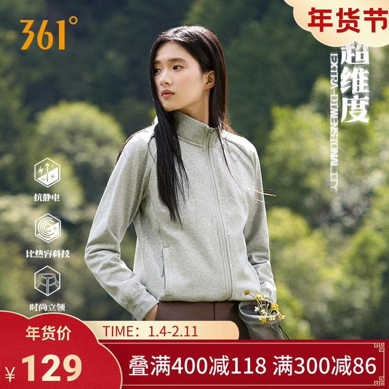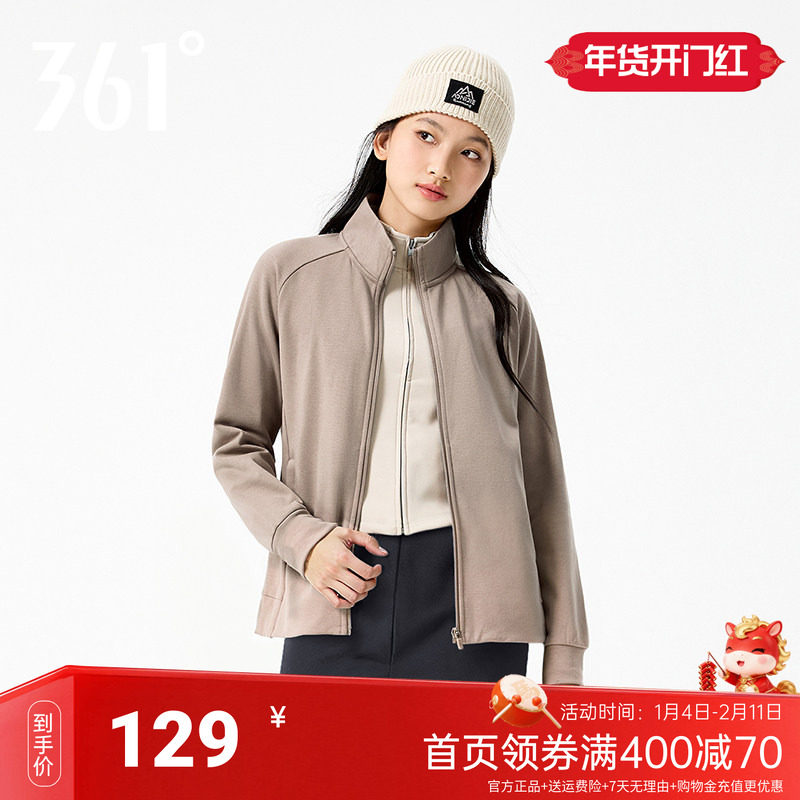 361运动外套女2025秋冬新款针织加绒外套舒适常规立领开衫上衣
