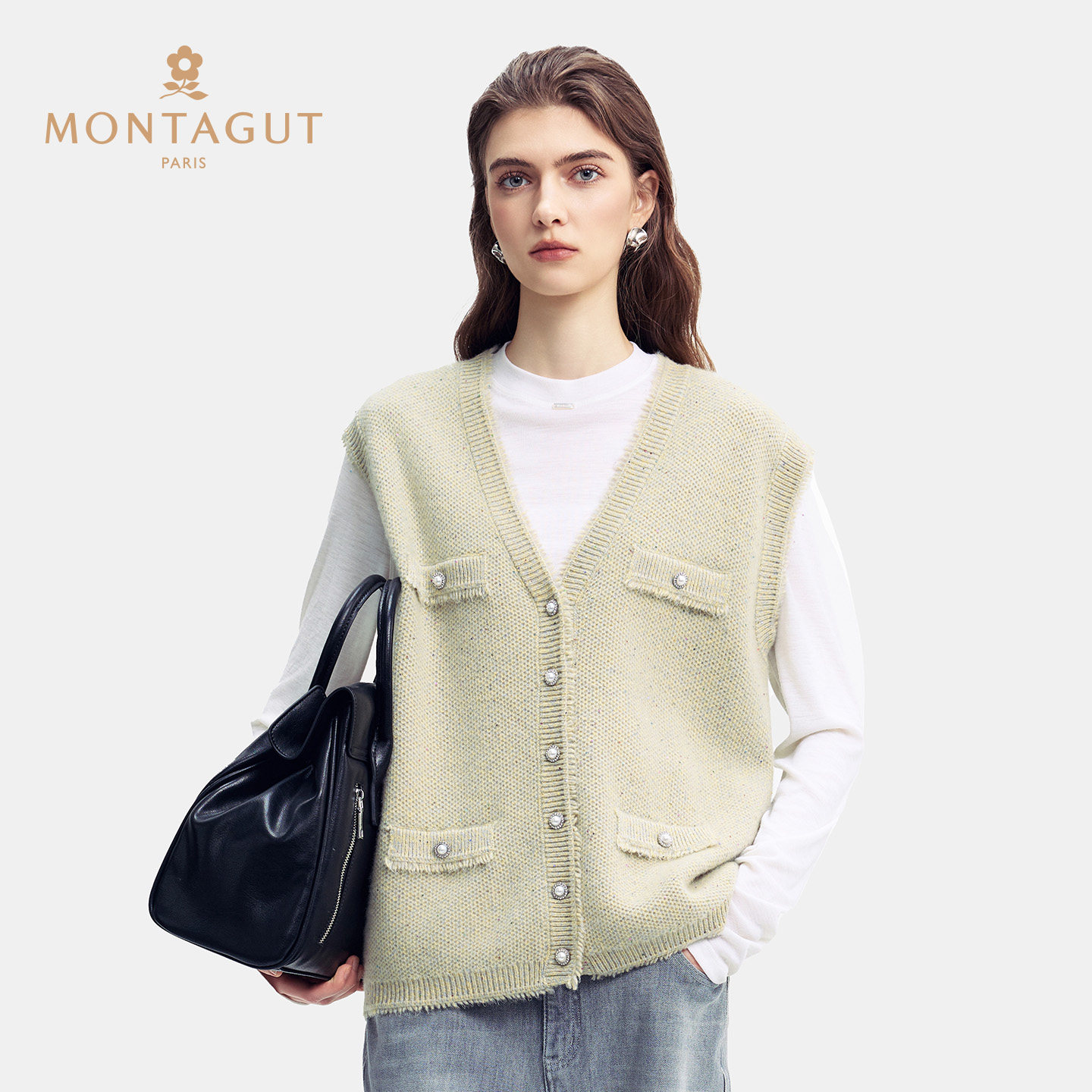 阿玛施商场同款26春灰色轻奢常规款百搭时尚开衫V领毛针织开衫女