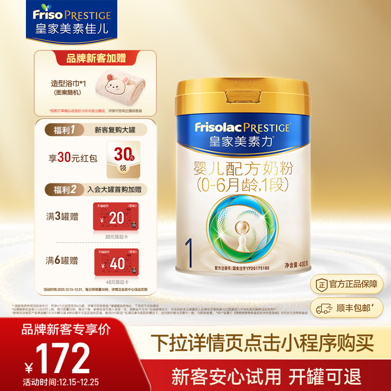 【品牌新客专享】皇家美素力婴儿配方奶粉1段400g*1罐 乳铁蛋白