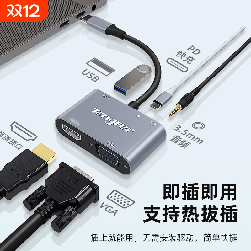 腾飞typec转hdmi拓展坞扩vga适用华为笔记本苹果平板ipad联想macbook电脑手机连接电视投影仪显示器投屏转换