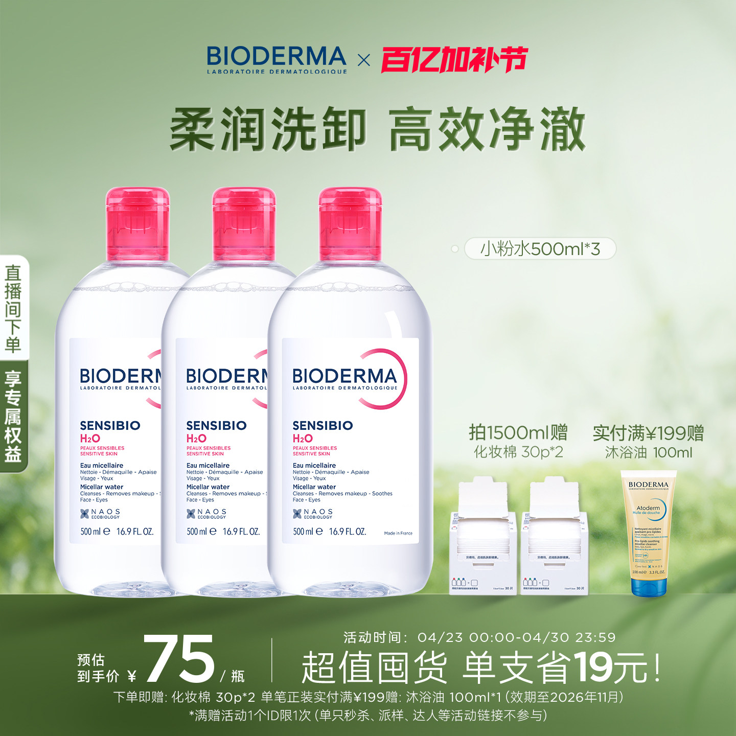 【自营】【易梦玲同款】贝德玛洁肤液1000ml敏感肌温和清洁卸妆液