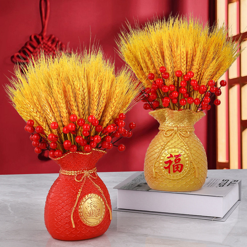 天然黄金大麦干花束福袋钱袋子客厅摆设件金黄麦穗装饰乔迁仿真花