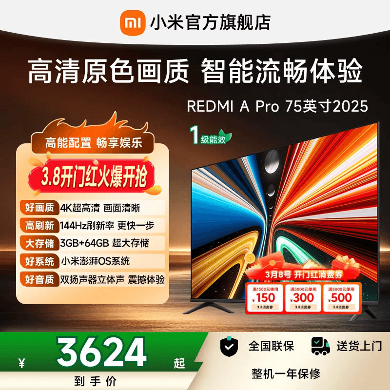 小米REDMI智能电视A Pro75英寸 144Hz高刷护眼4K超高清平板电视机
