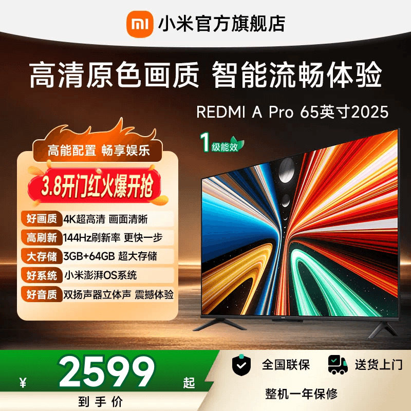 小米REDMI智能电视A Pro65英寸 144Hz高刷护眼4K超高清平板电视机