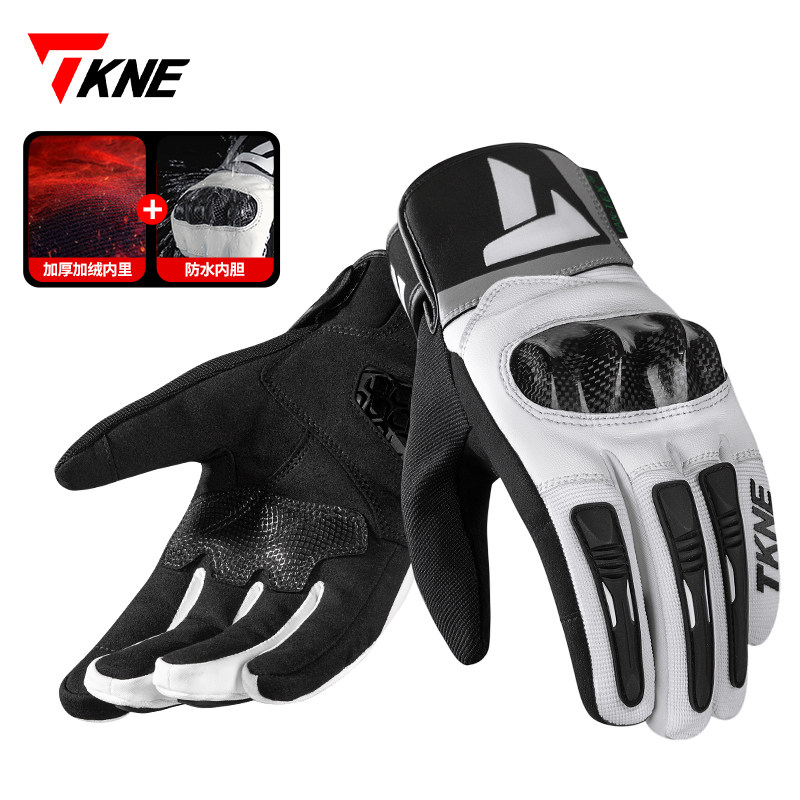 TKNE摩托车冬季手套碳纤维防摔防寒机车装备男女防风加绒保暖防水