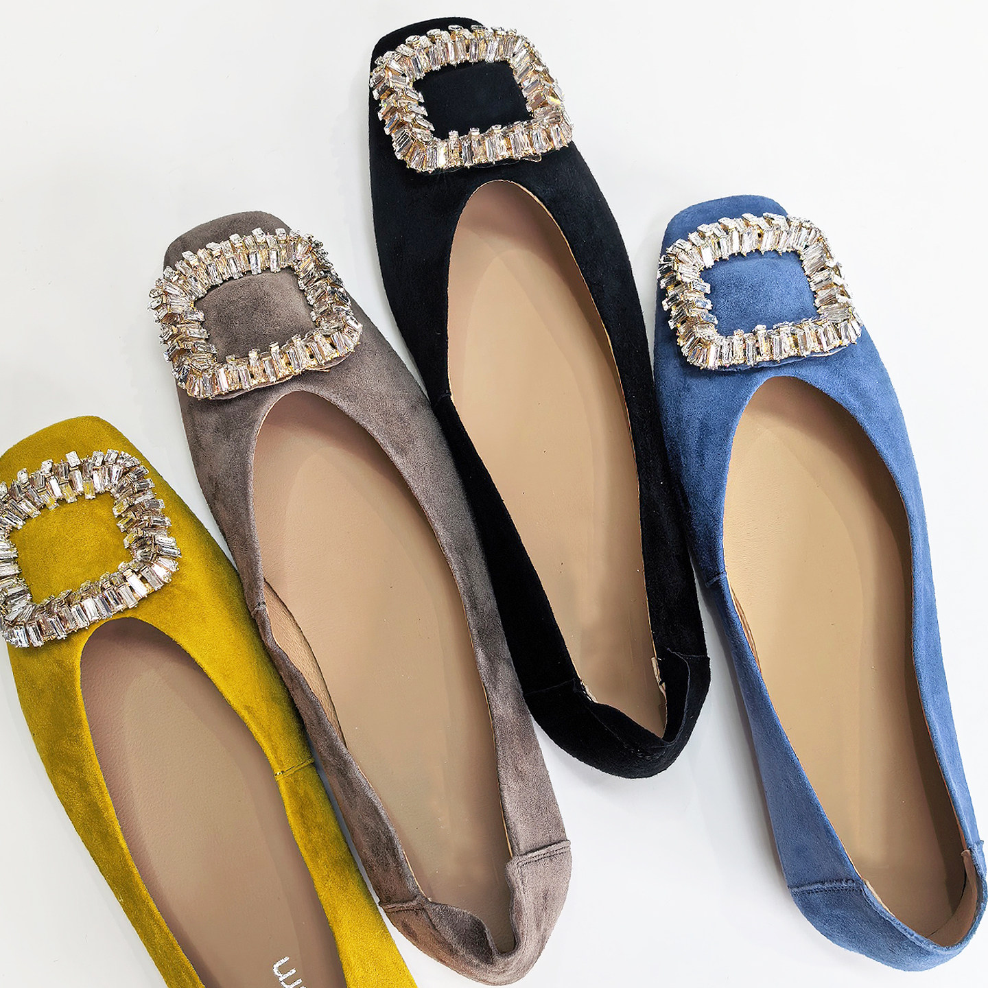 2026春新款法式水钻平底鞋软皮软底浅口奶奶鞋磨砂皮平跟单鞋瓢鞋