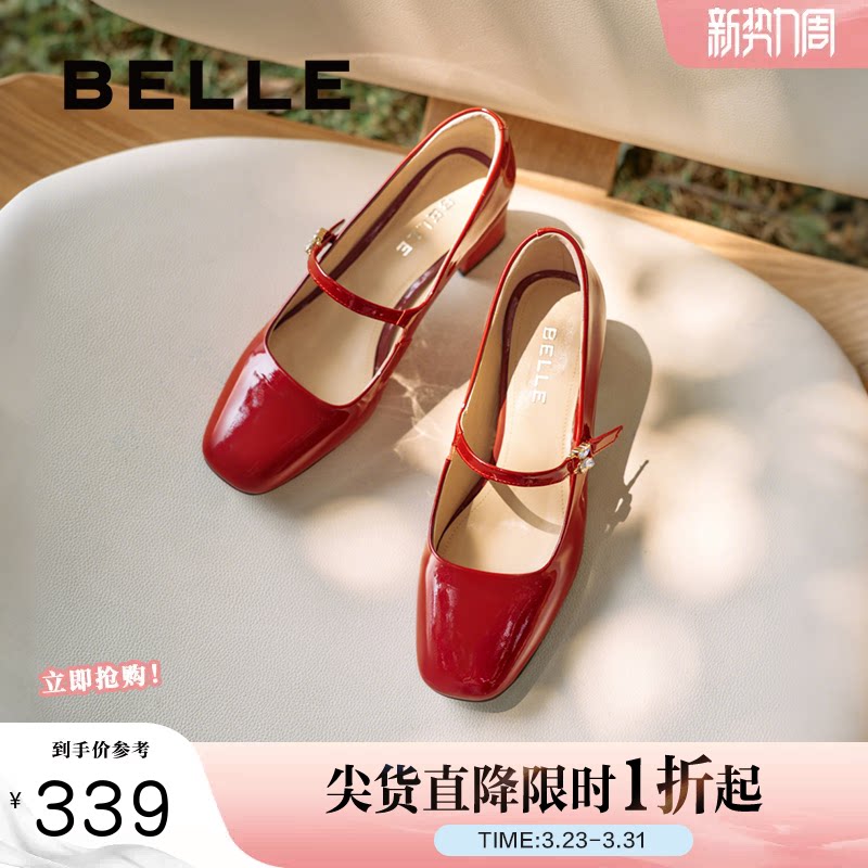 百丽淑女气质玛丽珍鞋女鞋春季新款真皮平跟浅口单鞋子B2557AQ5