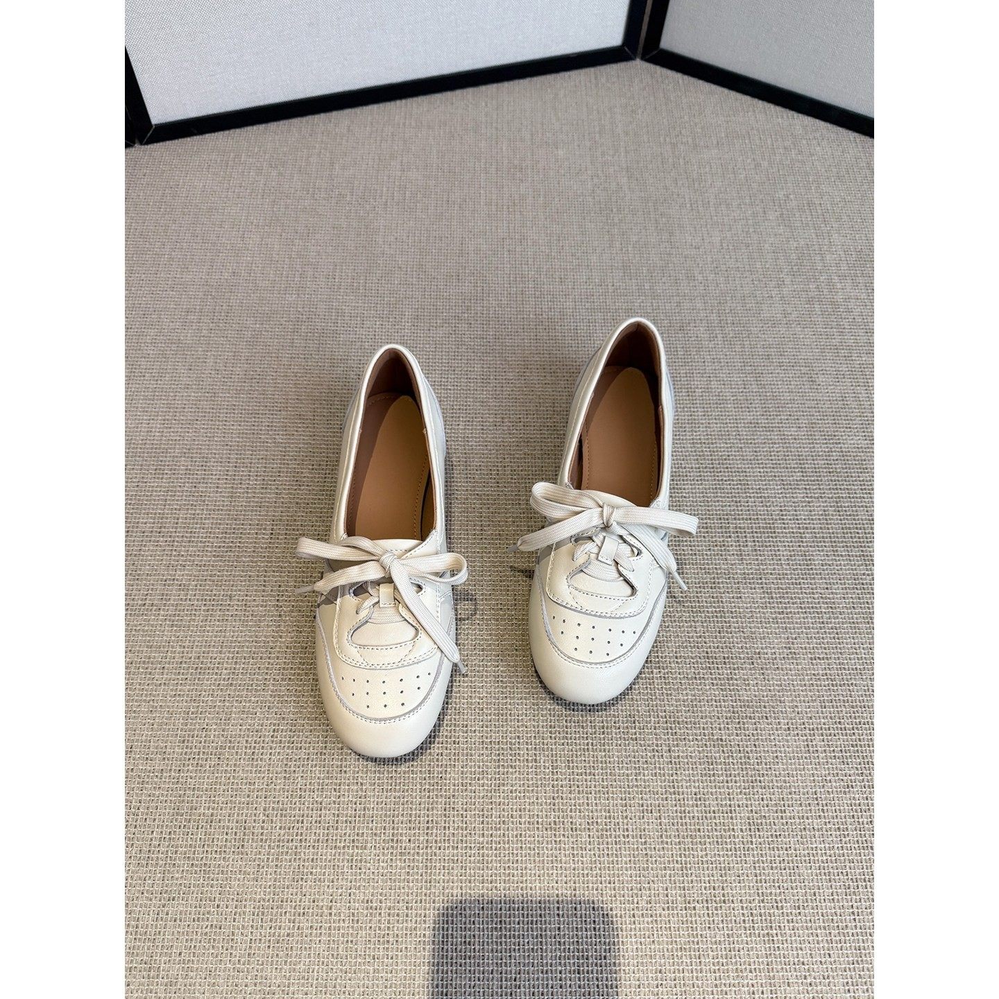 高奢原创镂空透气单鞋2026春季新款英伦风真皮圆头系带平跟浅口鞋