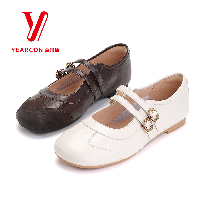 意尔康女鞋2026新款春季真皮玛丽珍鞋平跟软底舒适浅口单鞋一字扣