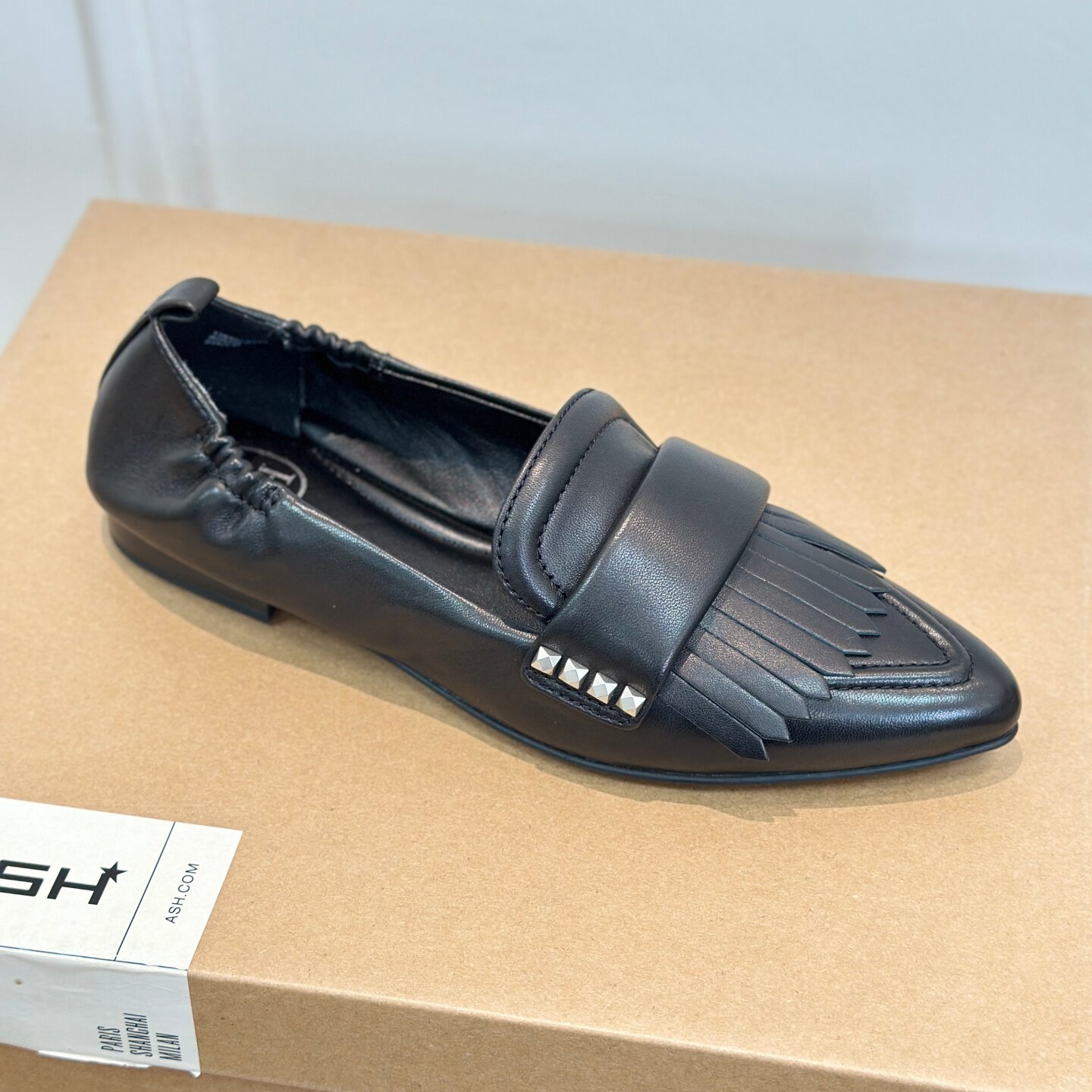 ASH女鞋平跟尖头浅口真皮流苏优雅舒适通勤休闲单鞋女AO334L40042